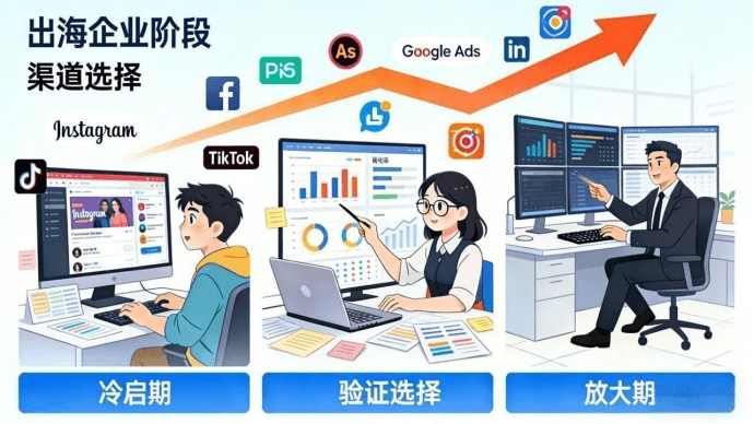 对出海企业而言,海外推广渠道的选择,本质上不是“在哪个平台投放”,而是在不同发展阶段,通过合适的渠道组合,构建可持续的增长路径。